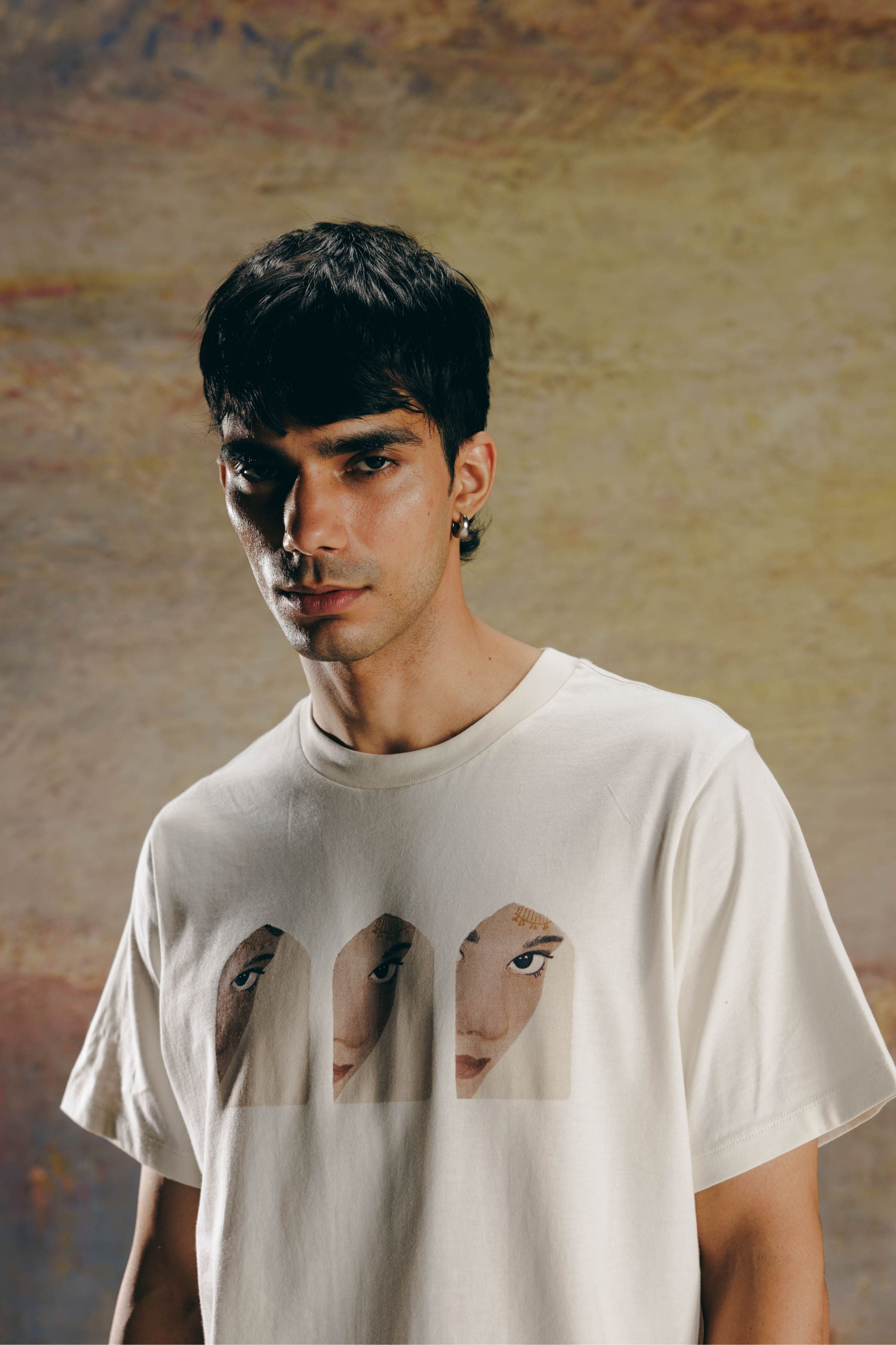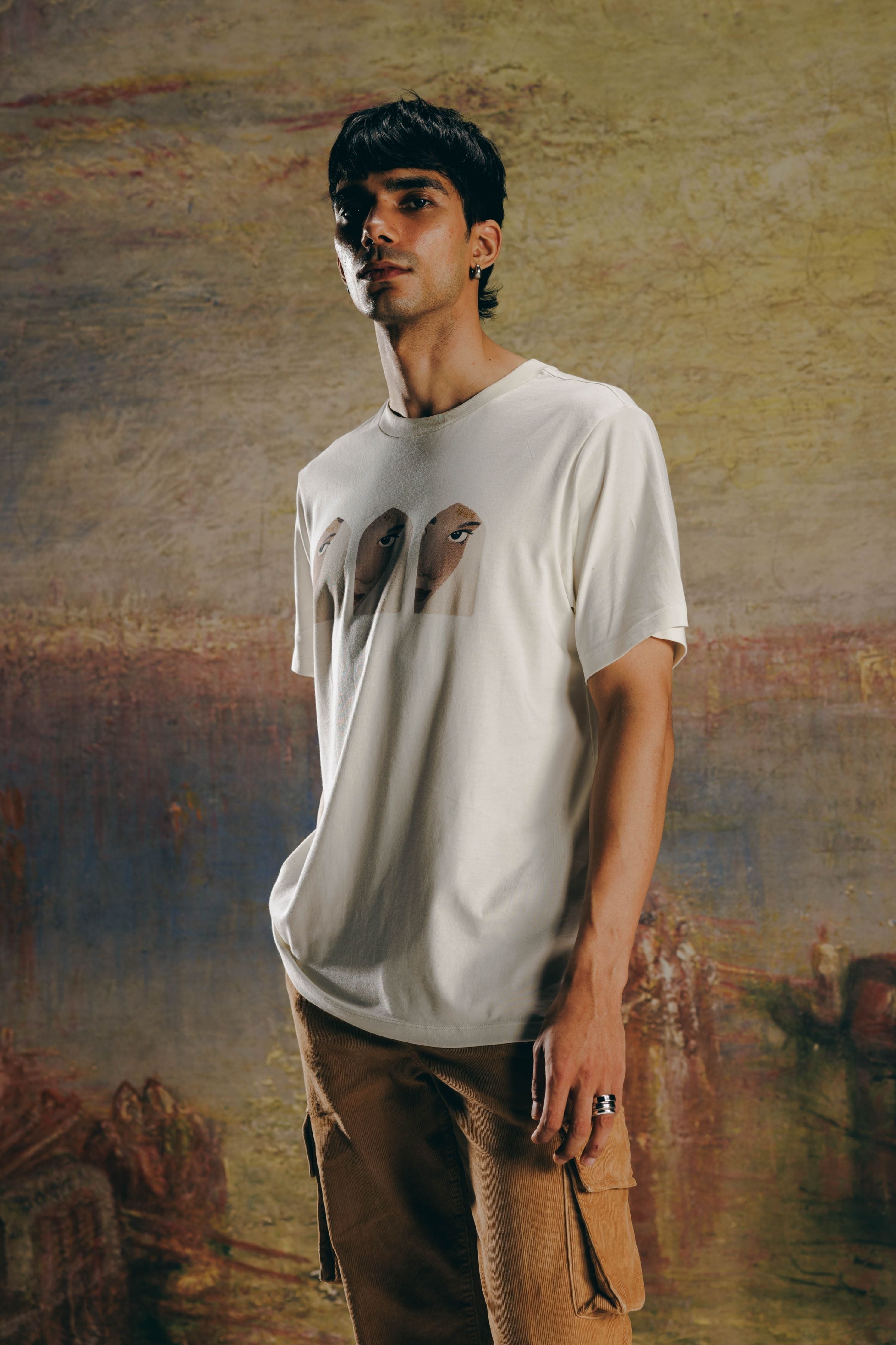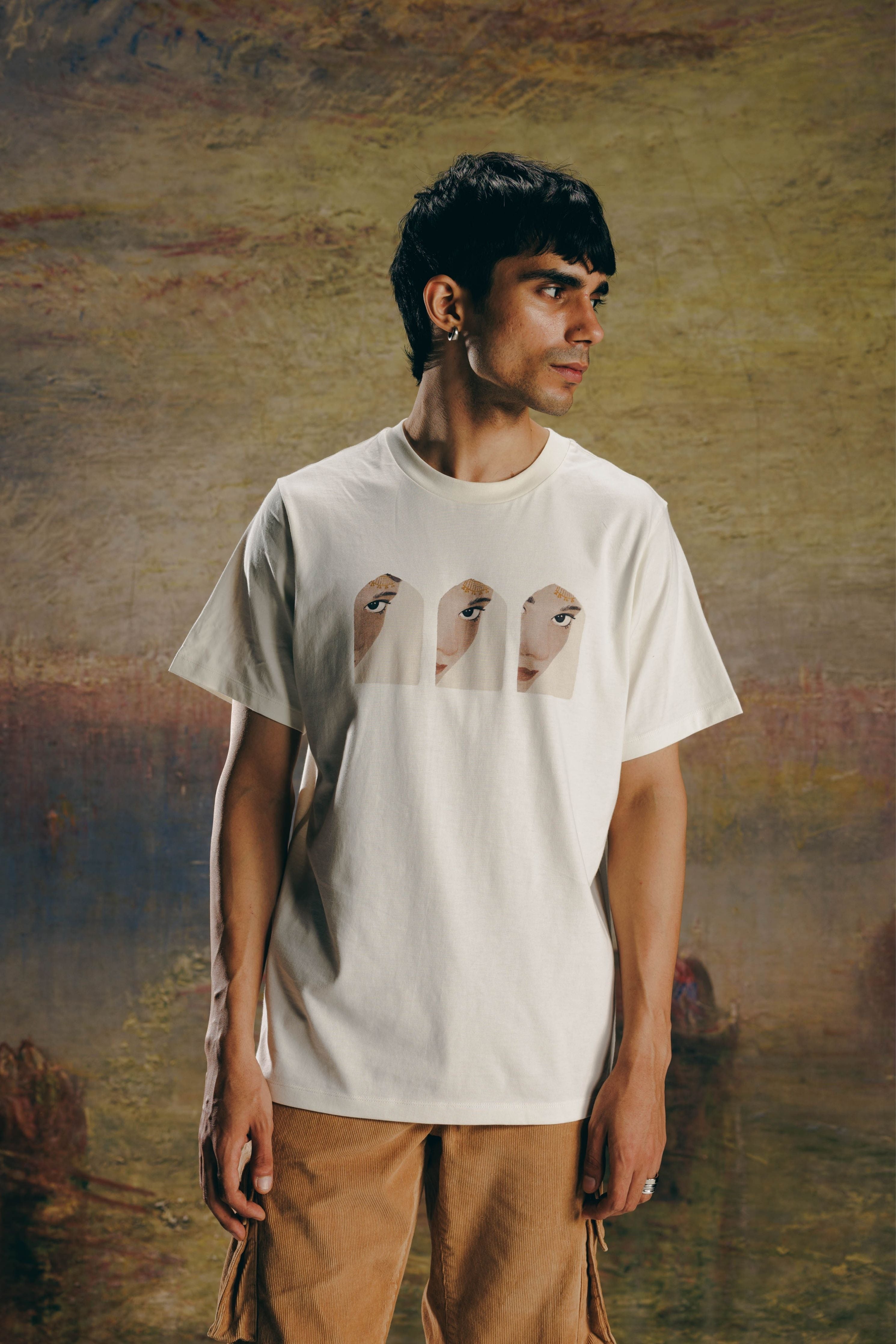 Crafted from a lightweight supple supima cotton, this t-shirt has a relaxed fit. The tee is features an enigmatic reveal of a face and an eye of the surrealist through the arc, highlighting the mysticism of their gaze.