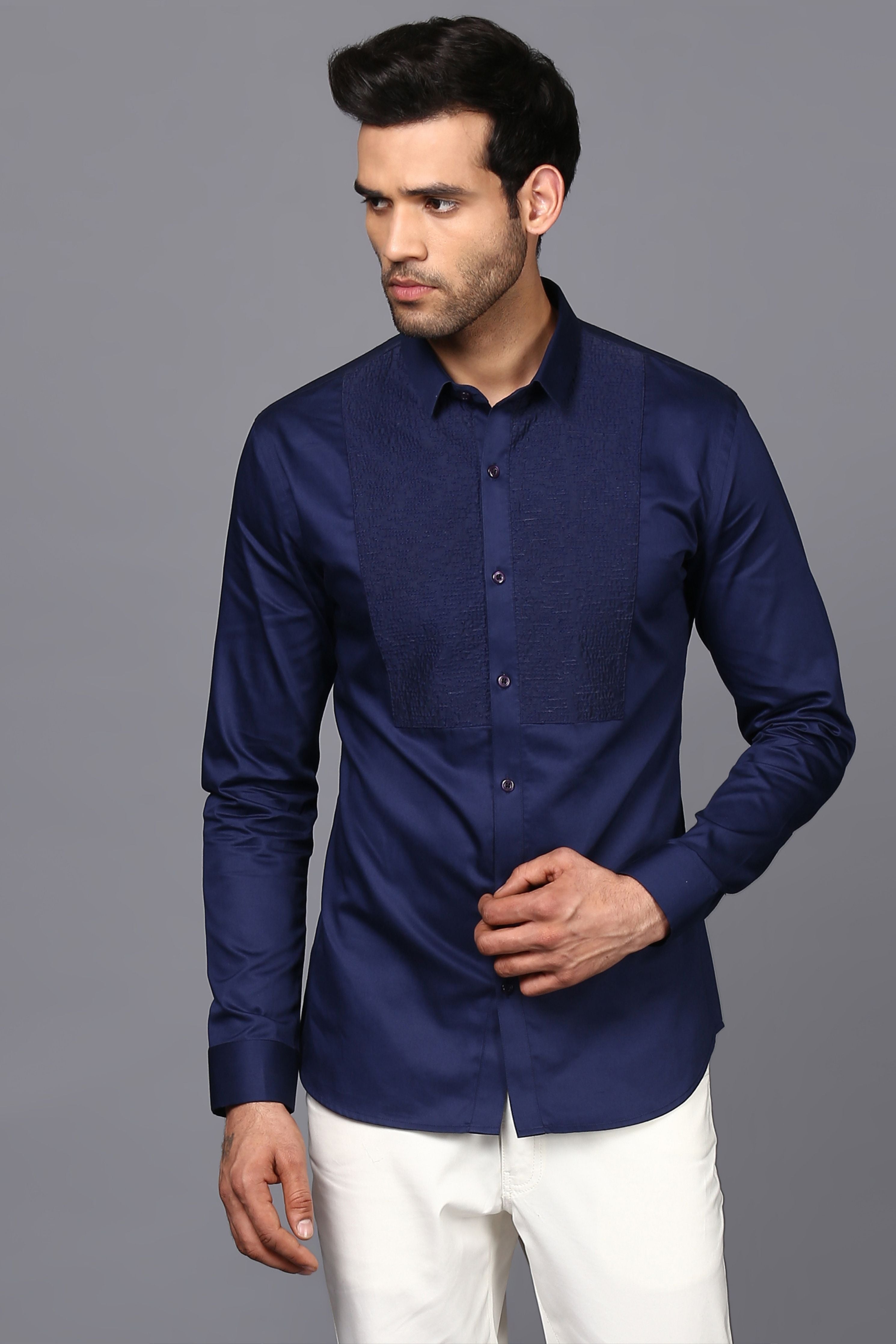Shine In The Spotlight At A Grand Party, Giving Your Outfit A Luxurious Update With This Royal Blue Shirt From Seven. It Has A Sharp Slim Collar, Eye-Catching Button Placket And Classy Cuffs That Amp Up Its Sophisticated Design. Tailored In Premium Cotton Fabric To Make You Feel Absolutely Comfortable With A Distinctive Abstract Embroidered Detail Yoke That Add Sophistication To It, This Shirt Can Be Clubbed Voguishly With Black Trousers And Glossy Derbies.