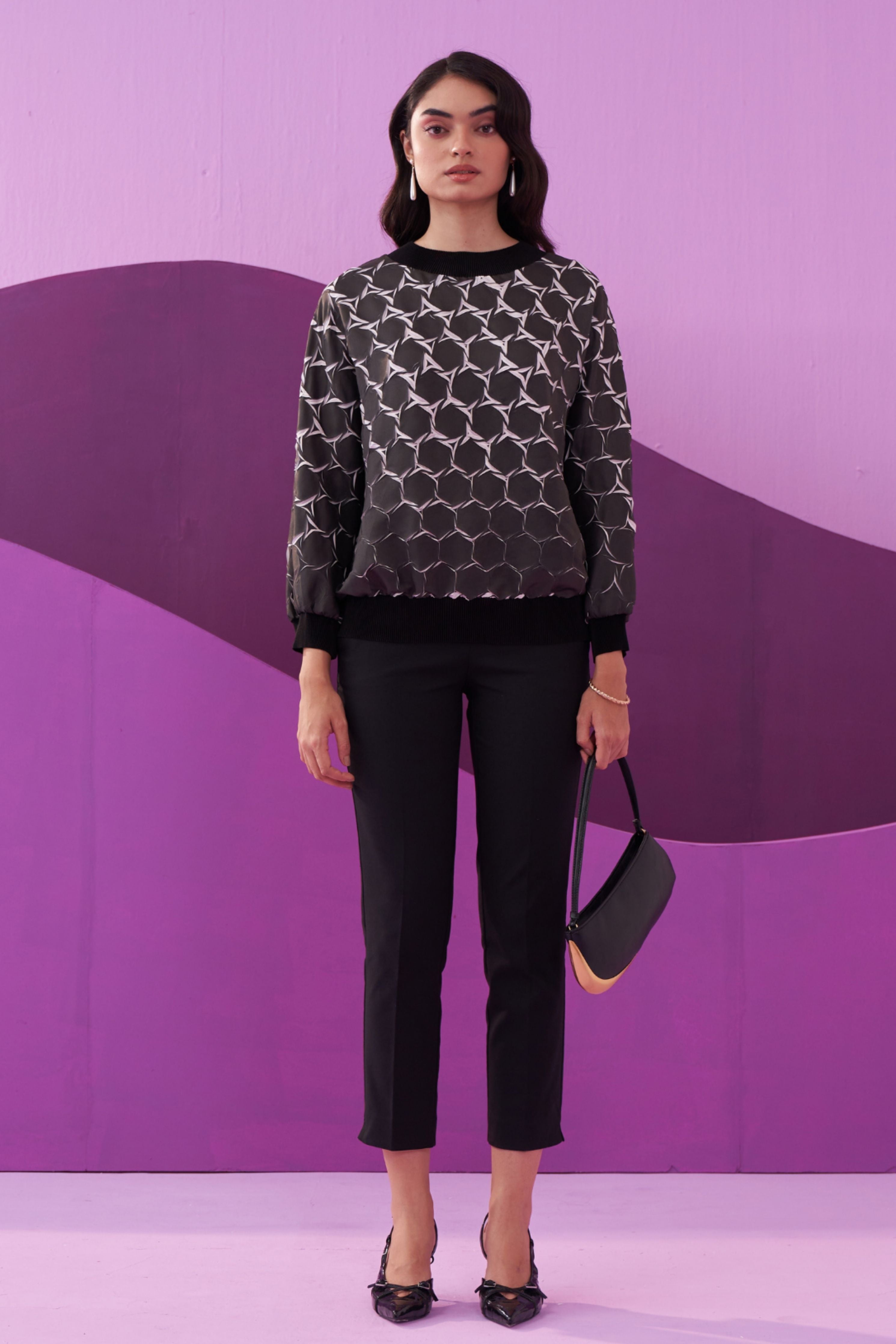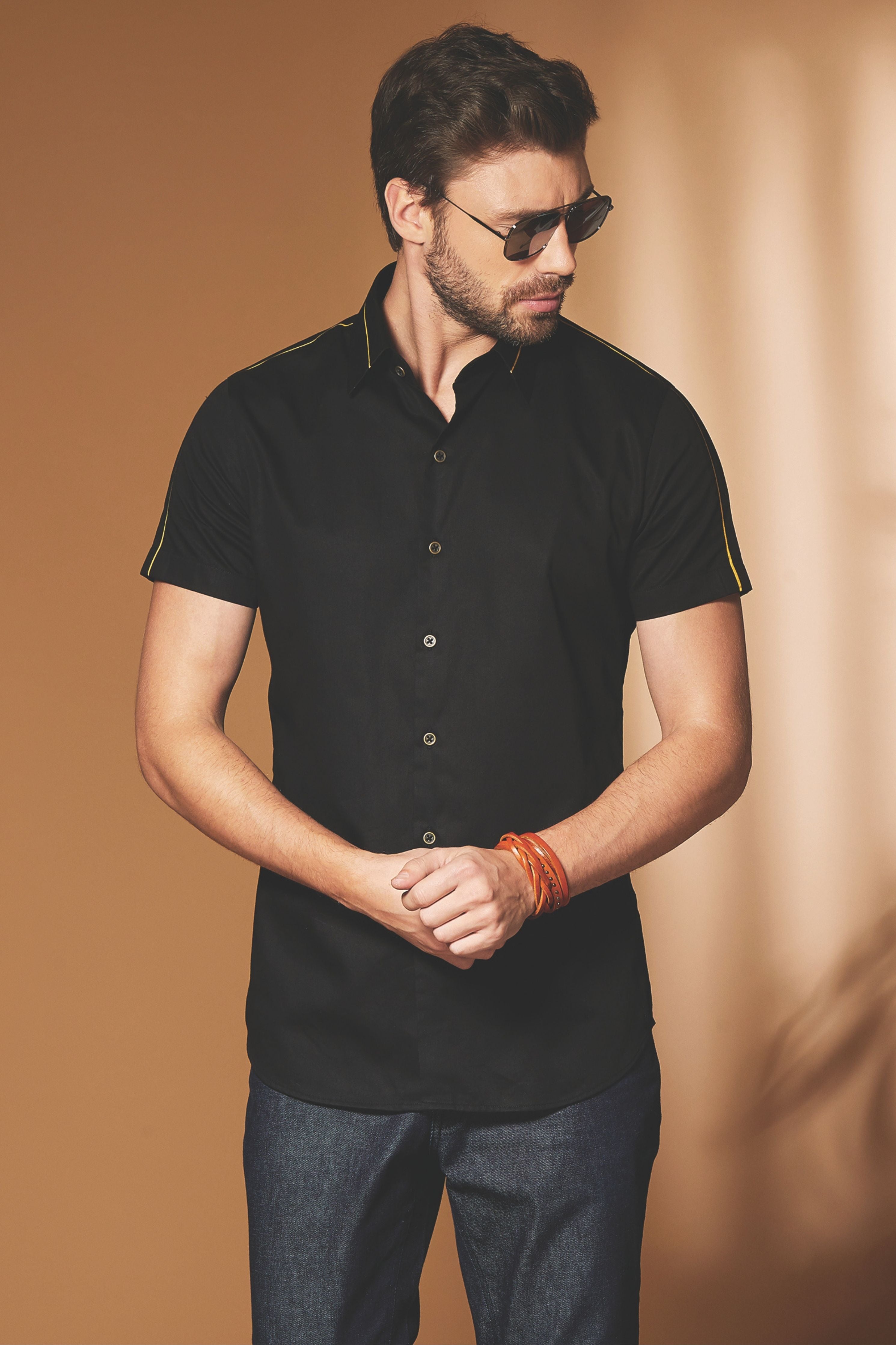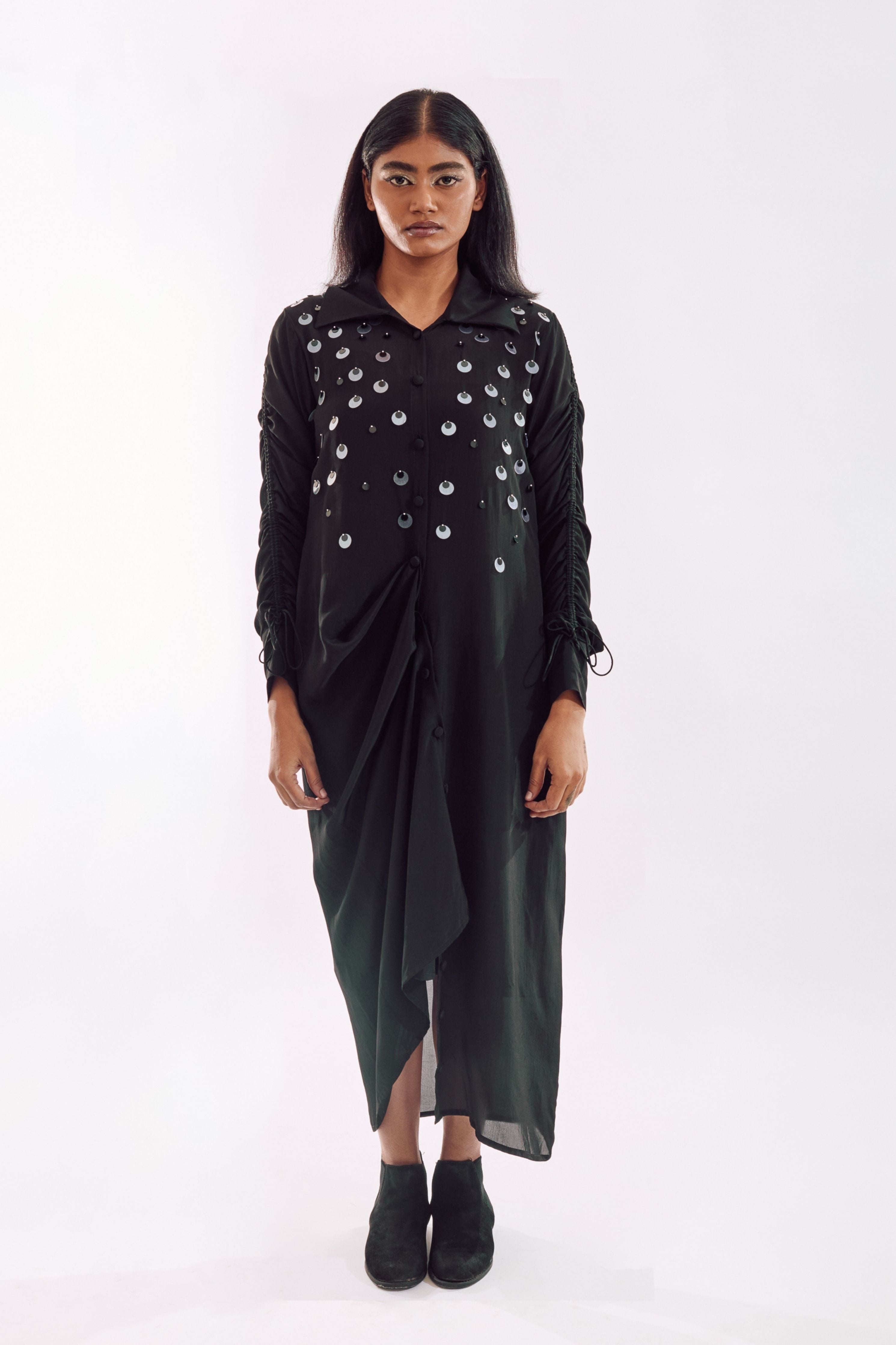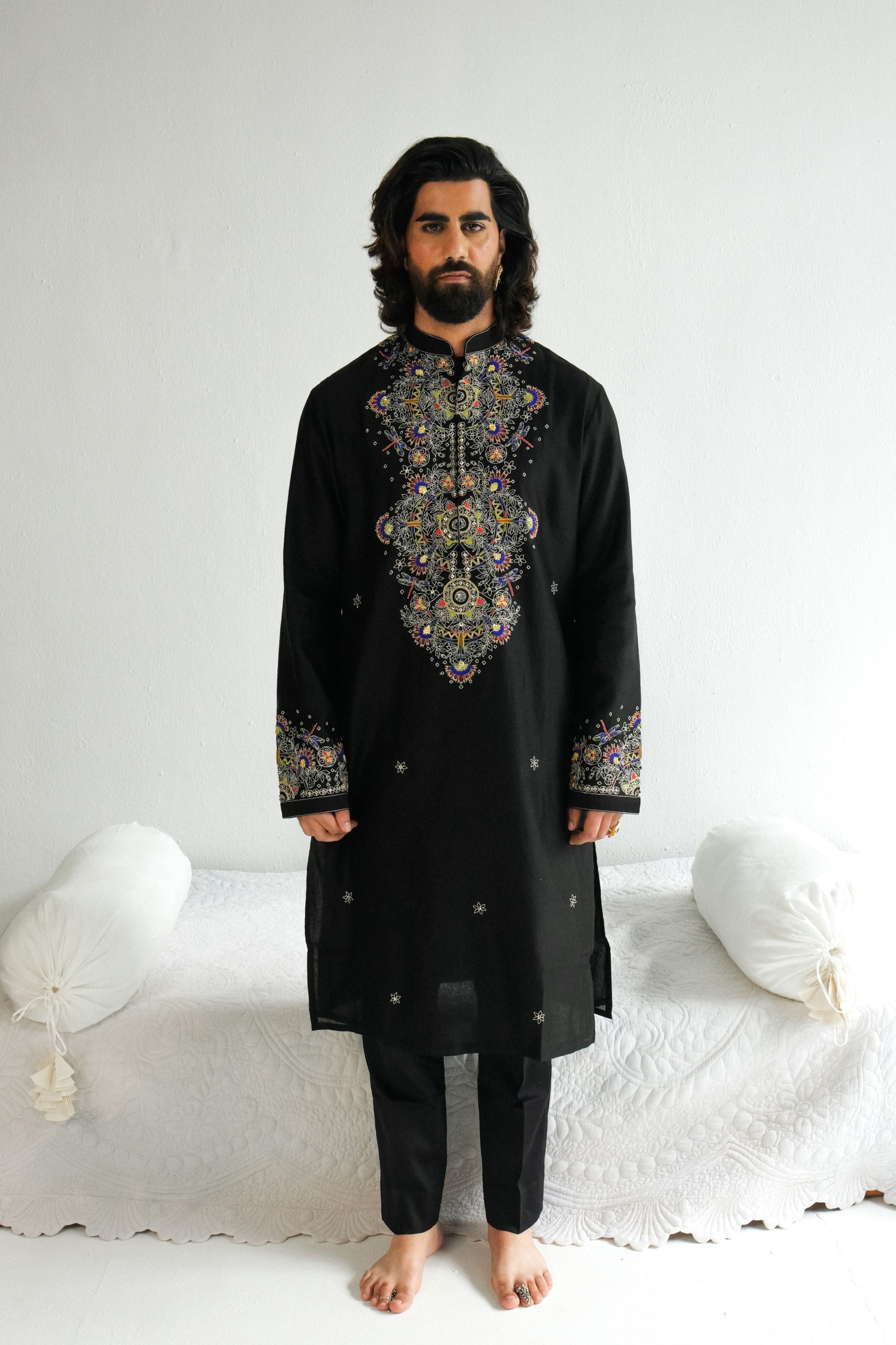 Black Coird Set With Cape Style Short Jacket And Embroidered Bustier