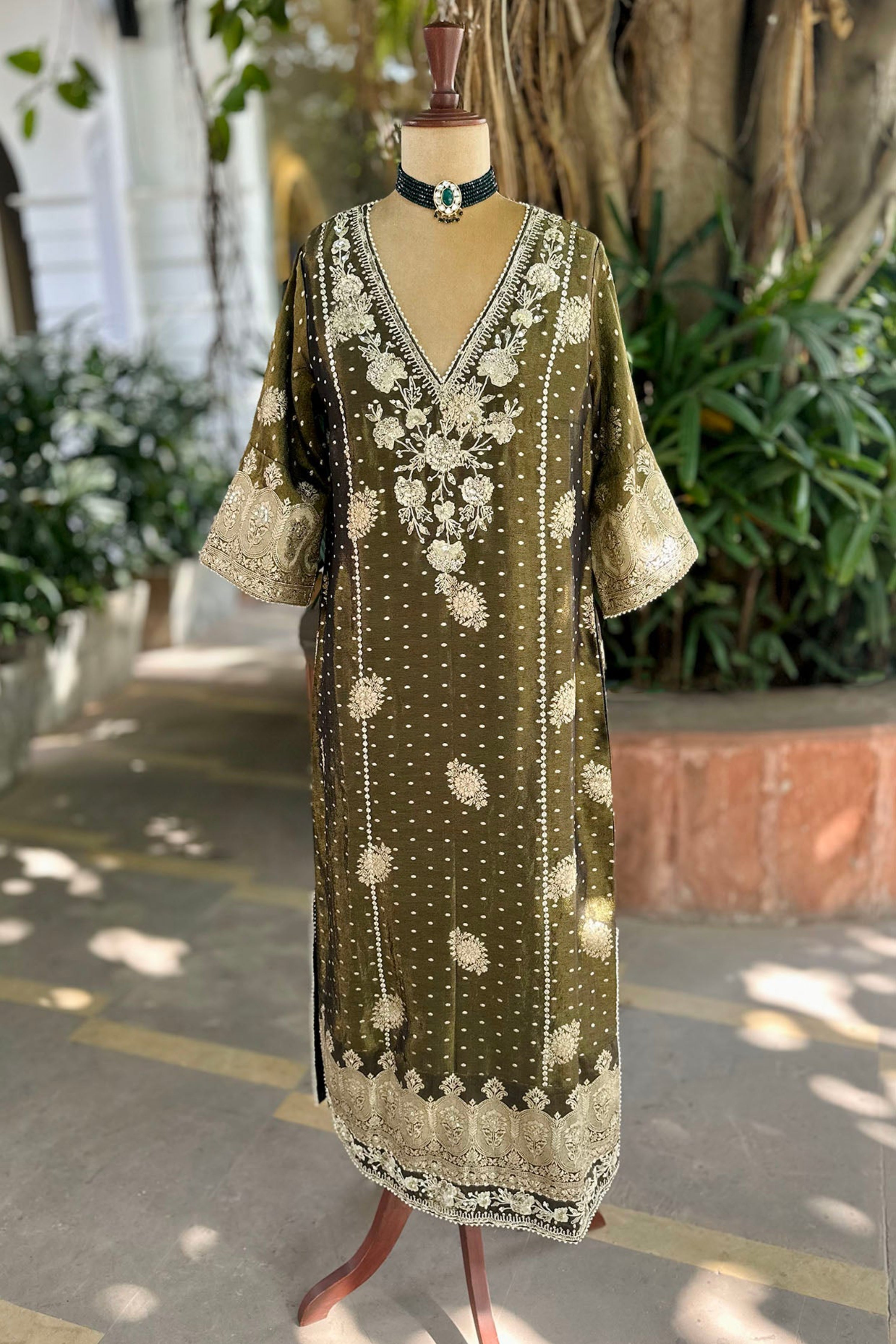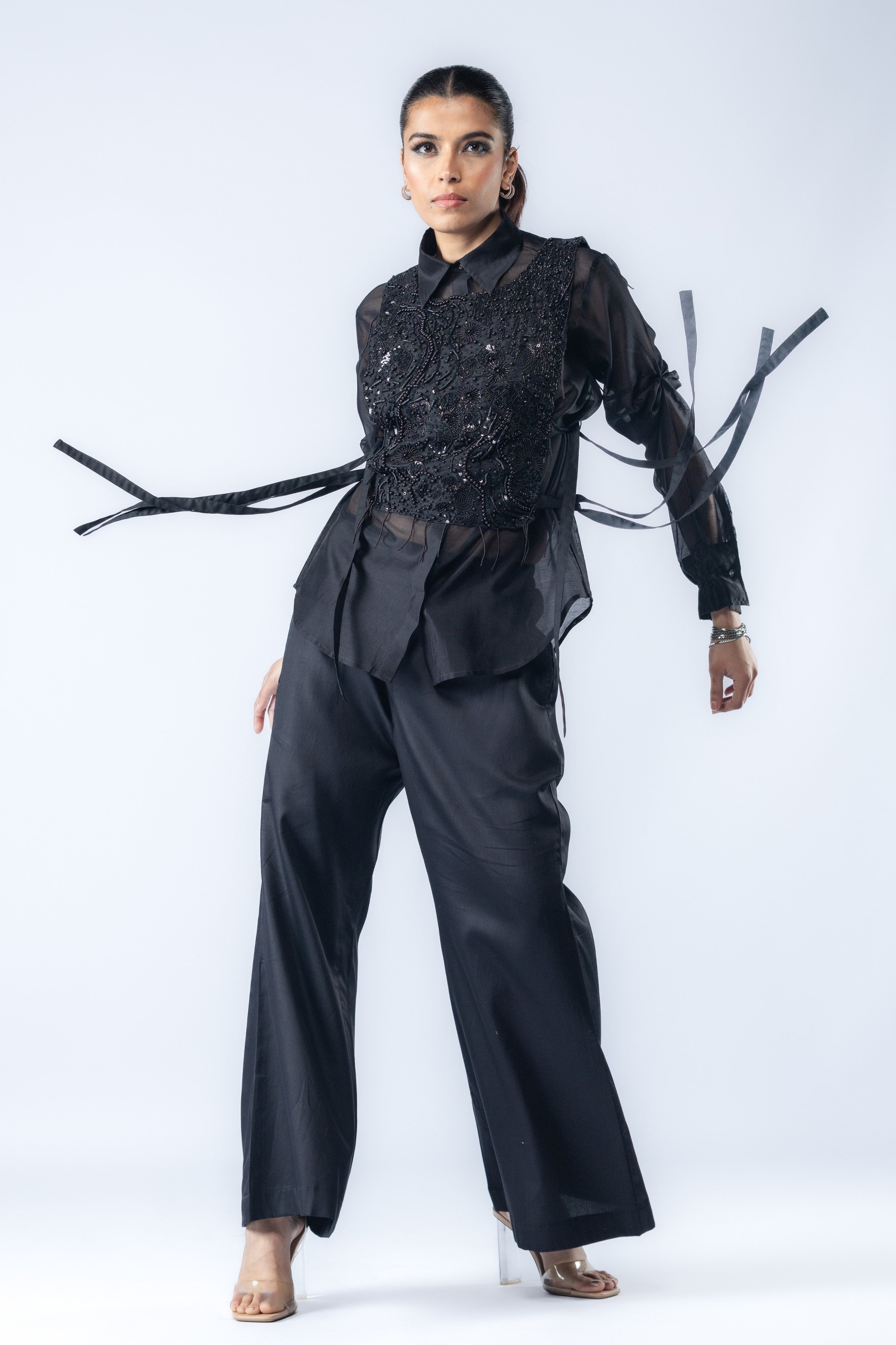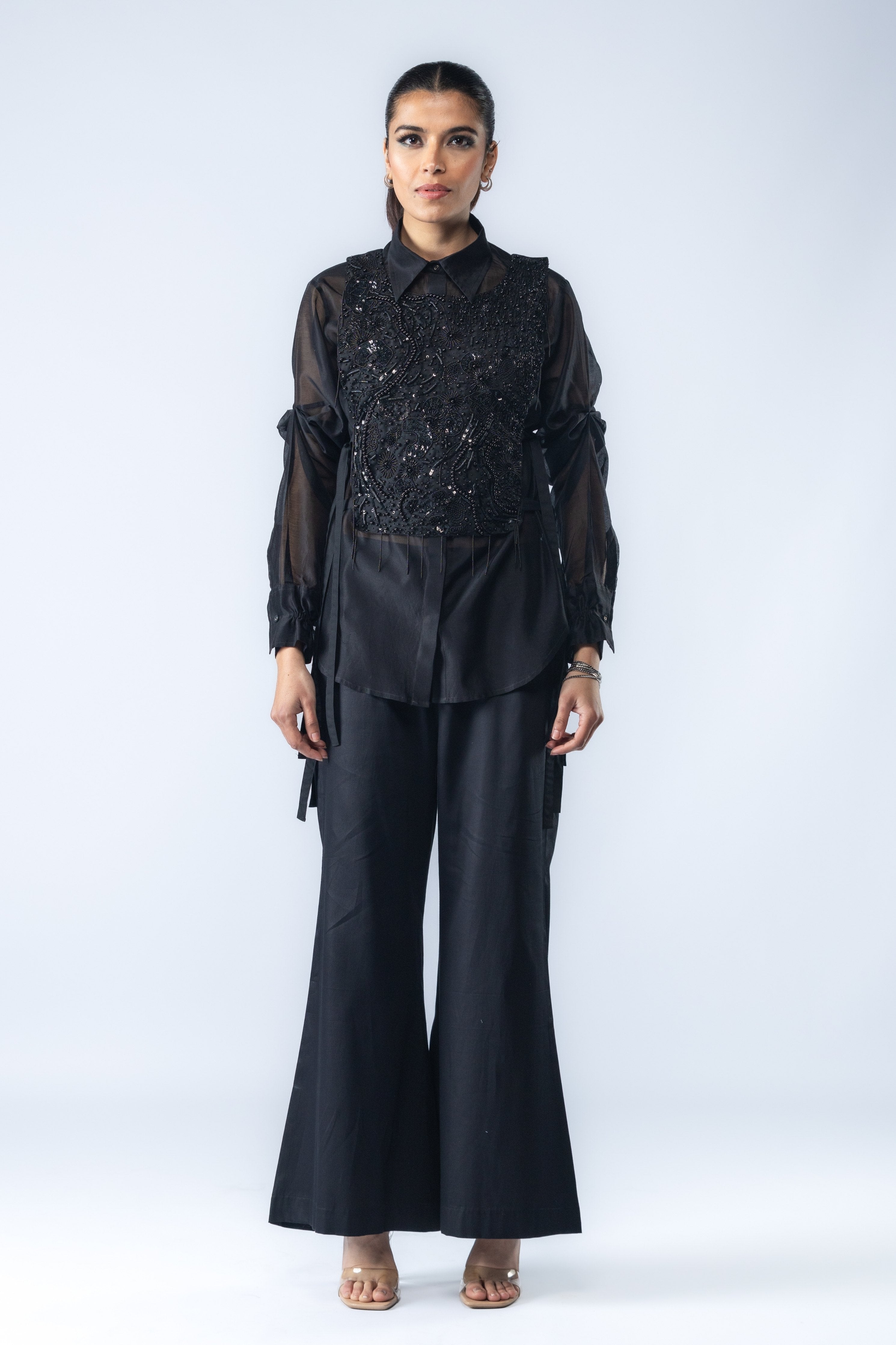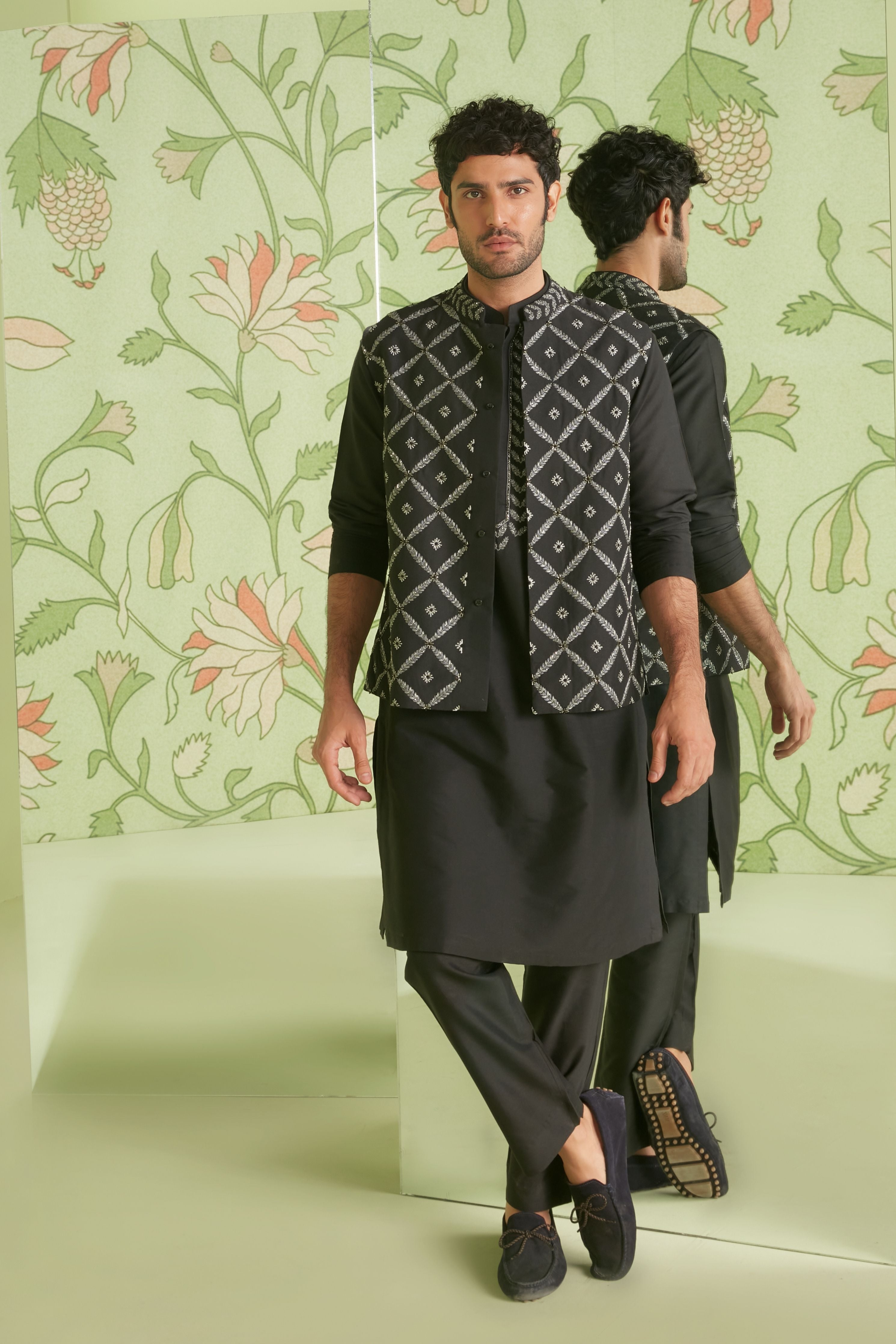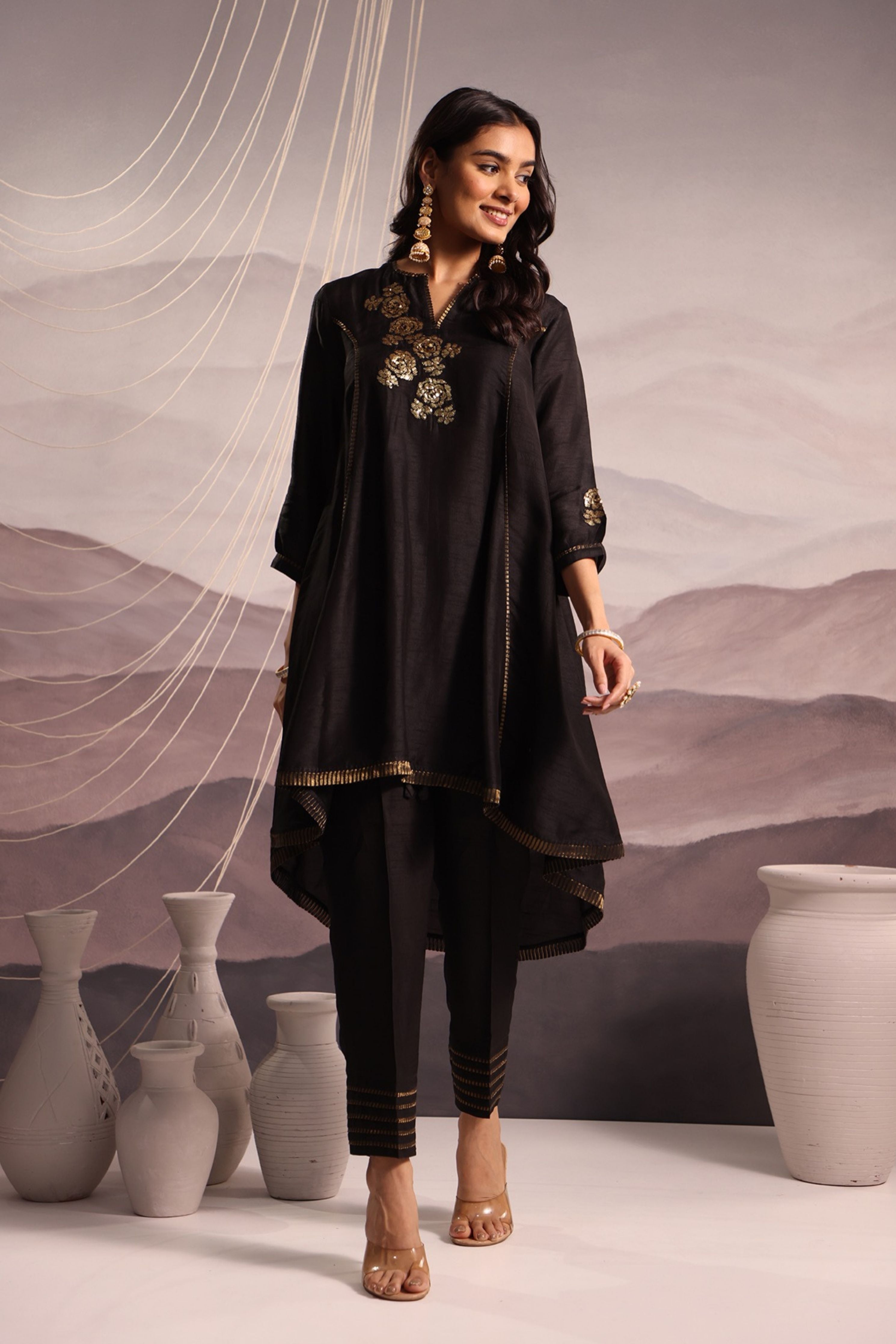 Black Kurta With Pyramid Arrow And Sally Chitha Work