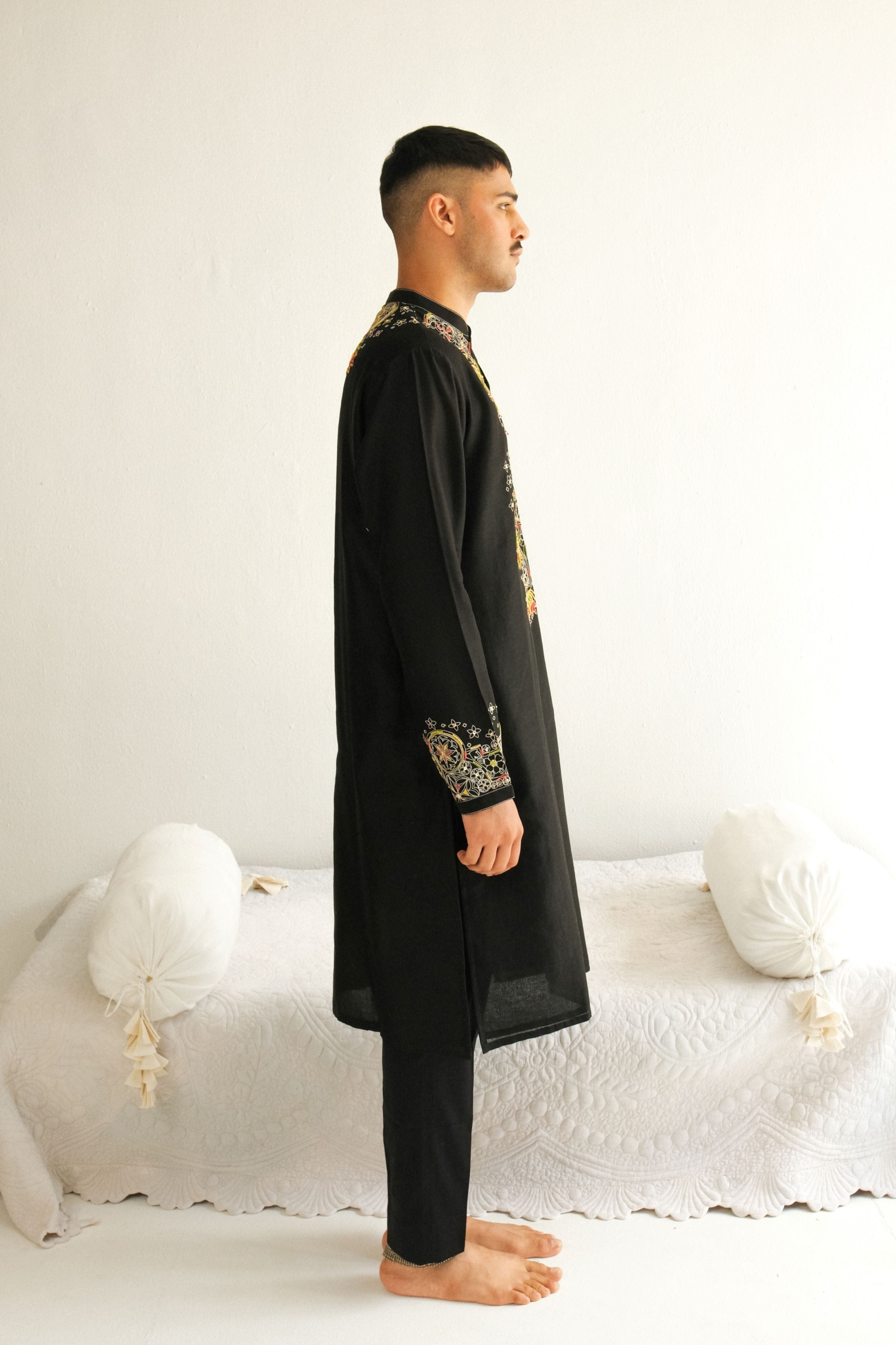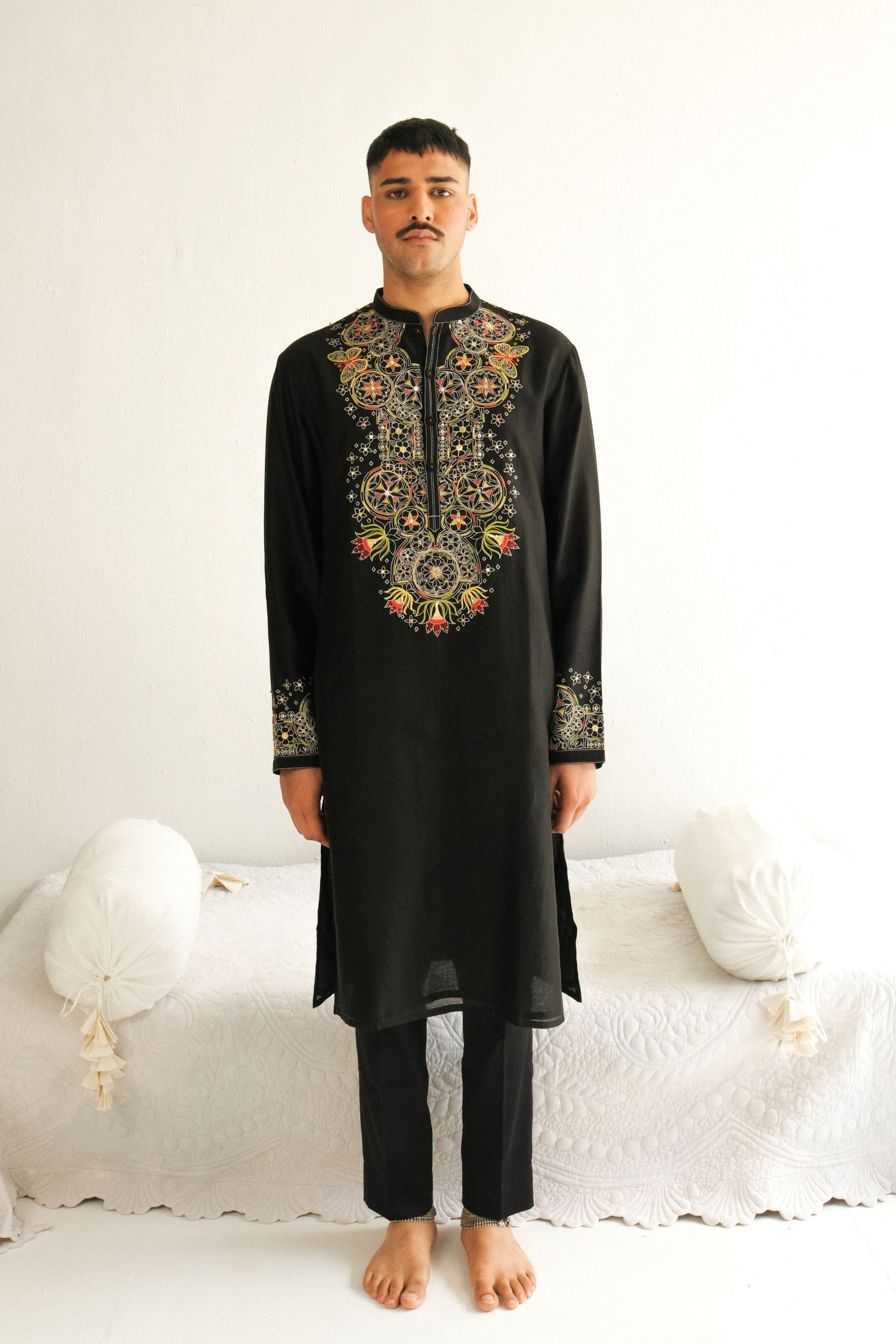 Black Kurta with Double Pyramid With Center - Sally Chitha Work