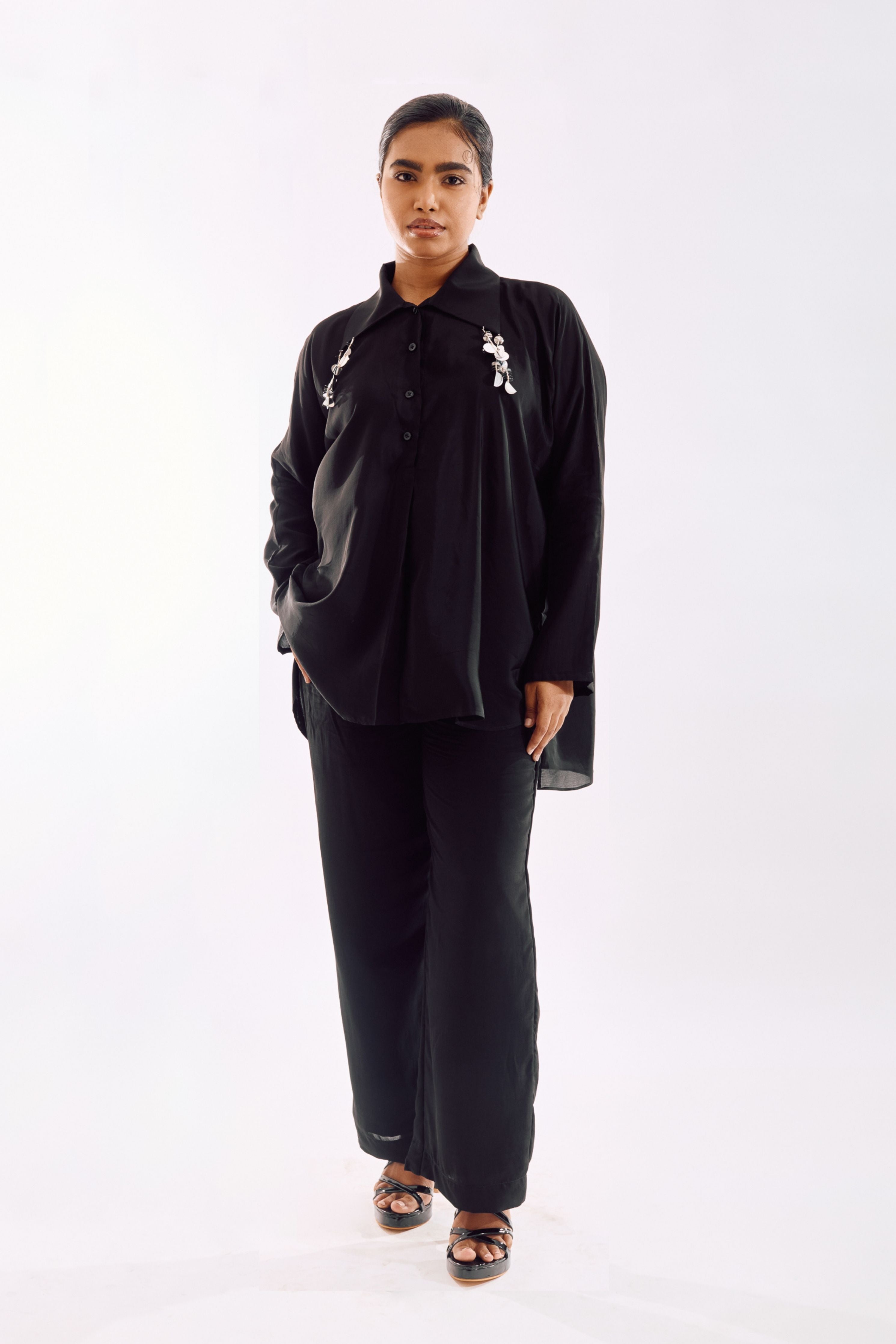 Black Shirt With Star Studded Shoulder Flaps