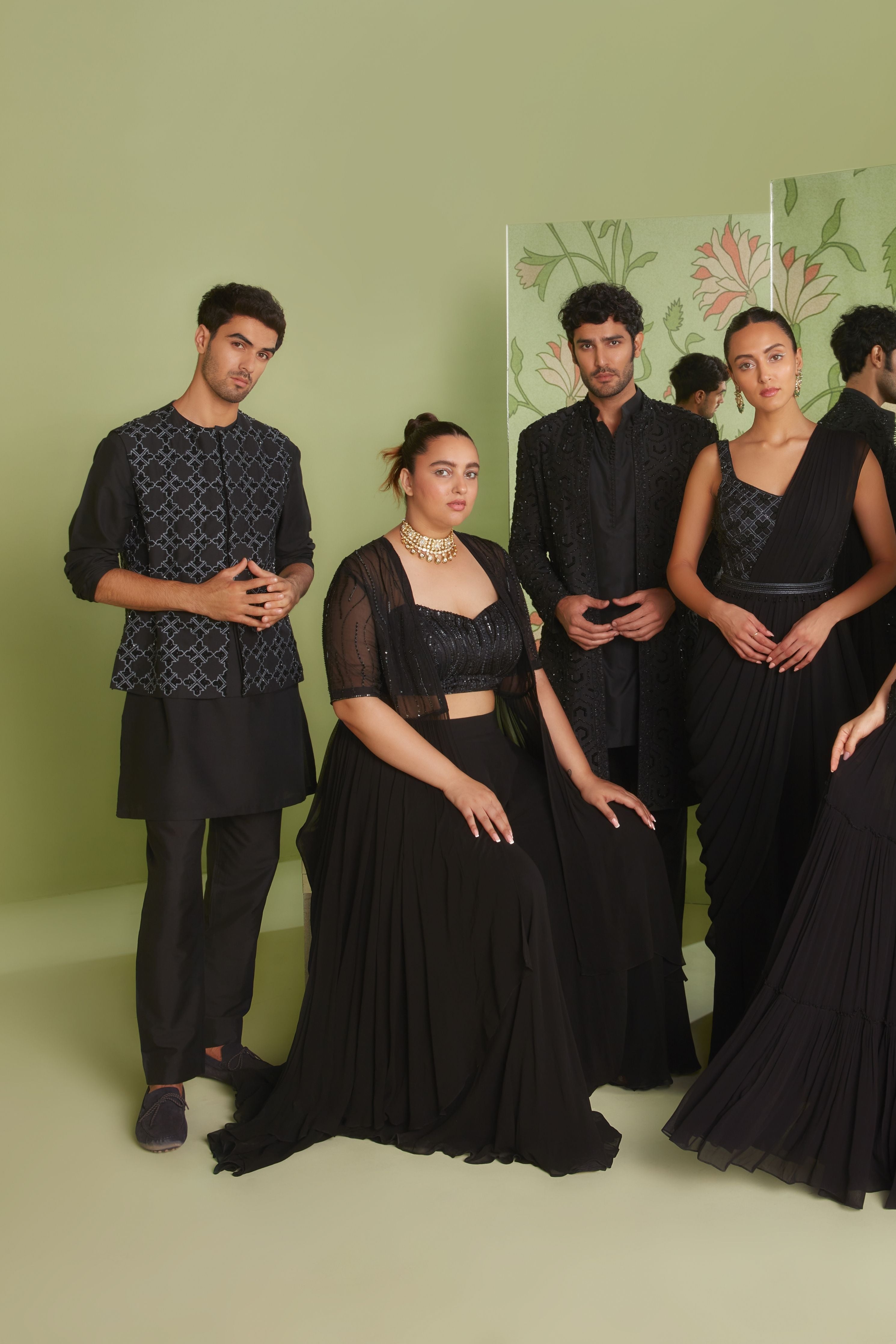 Black Wave Kurta With Standing Sally and Poth Embellishment