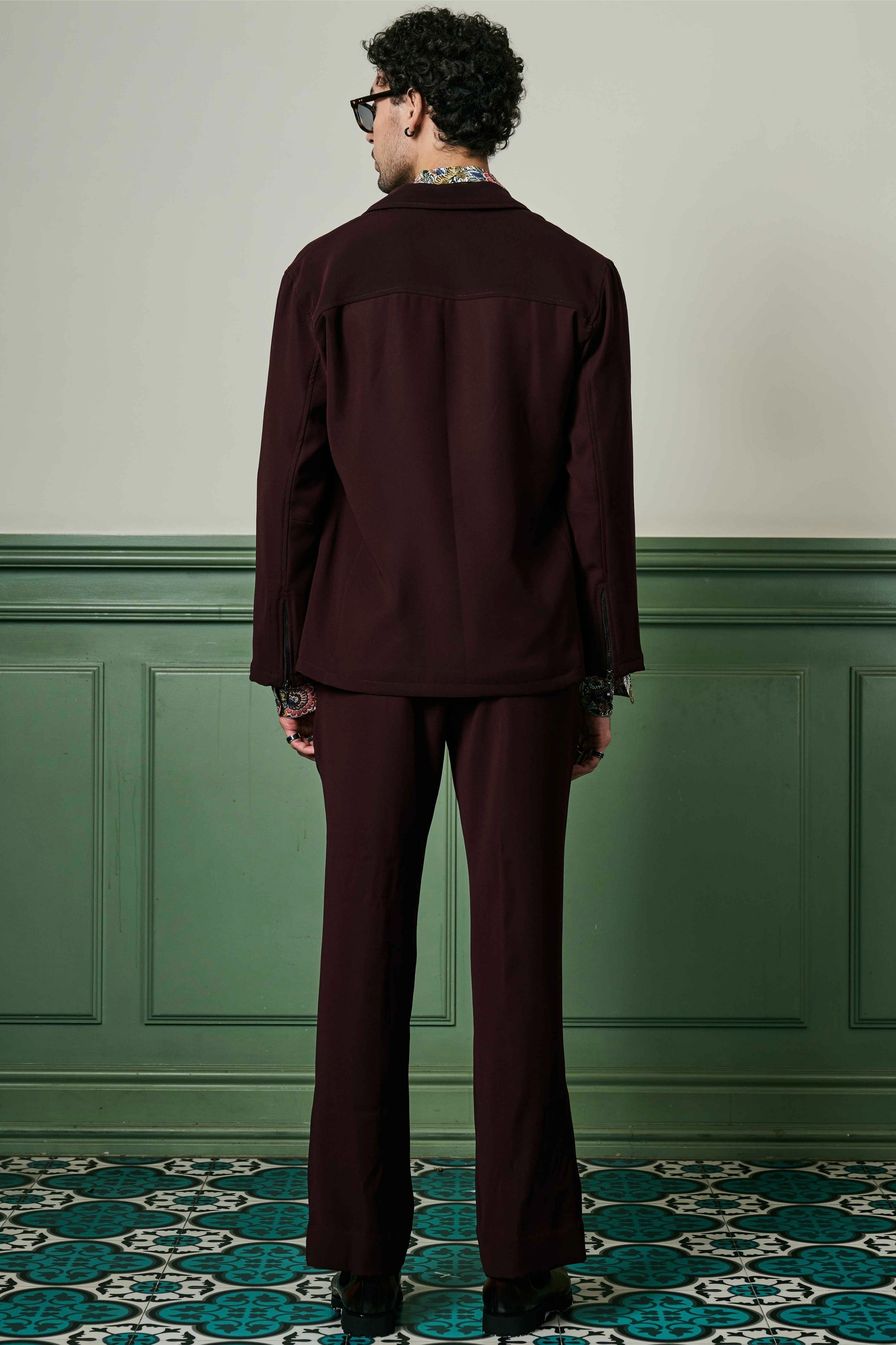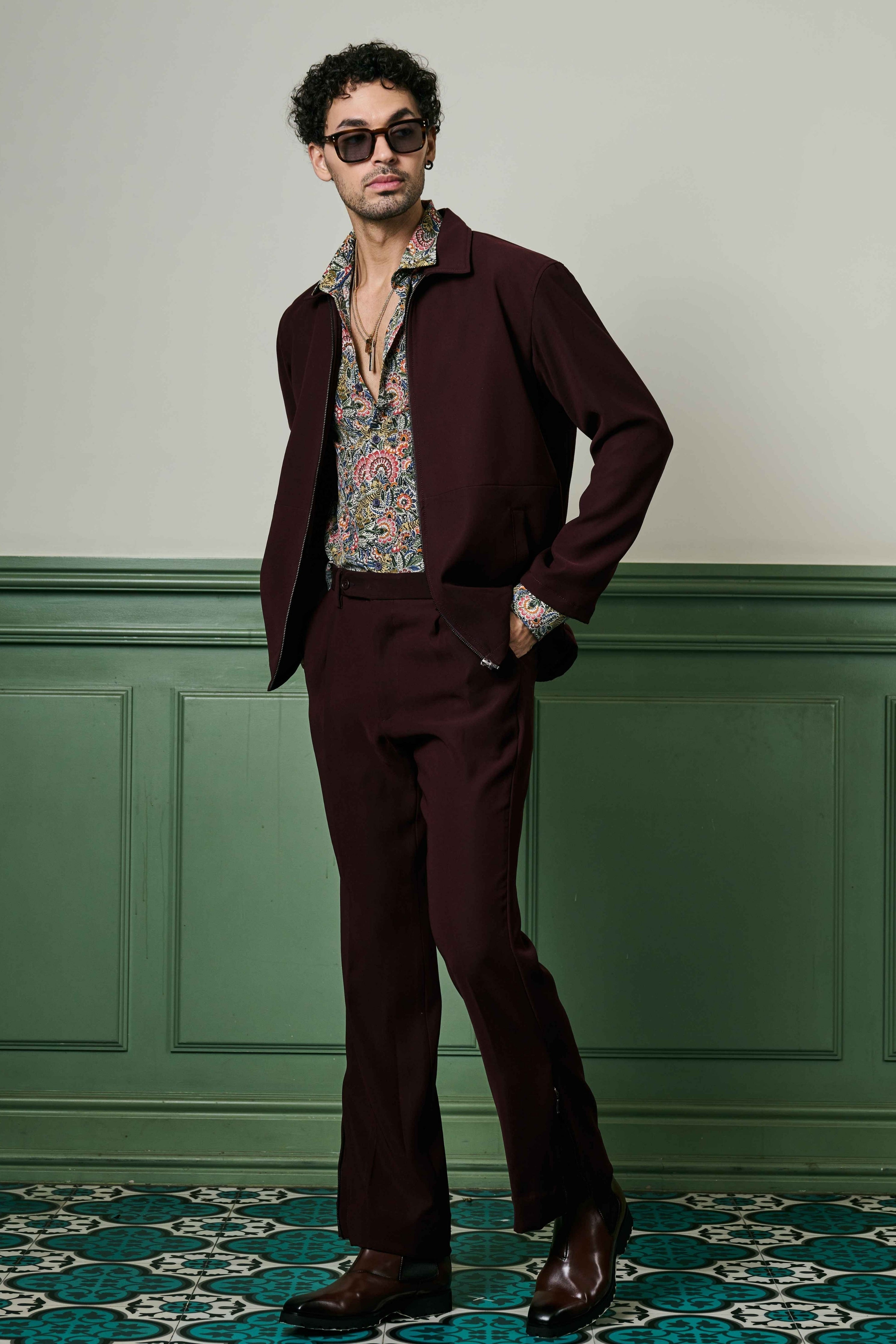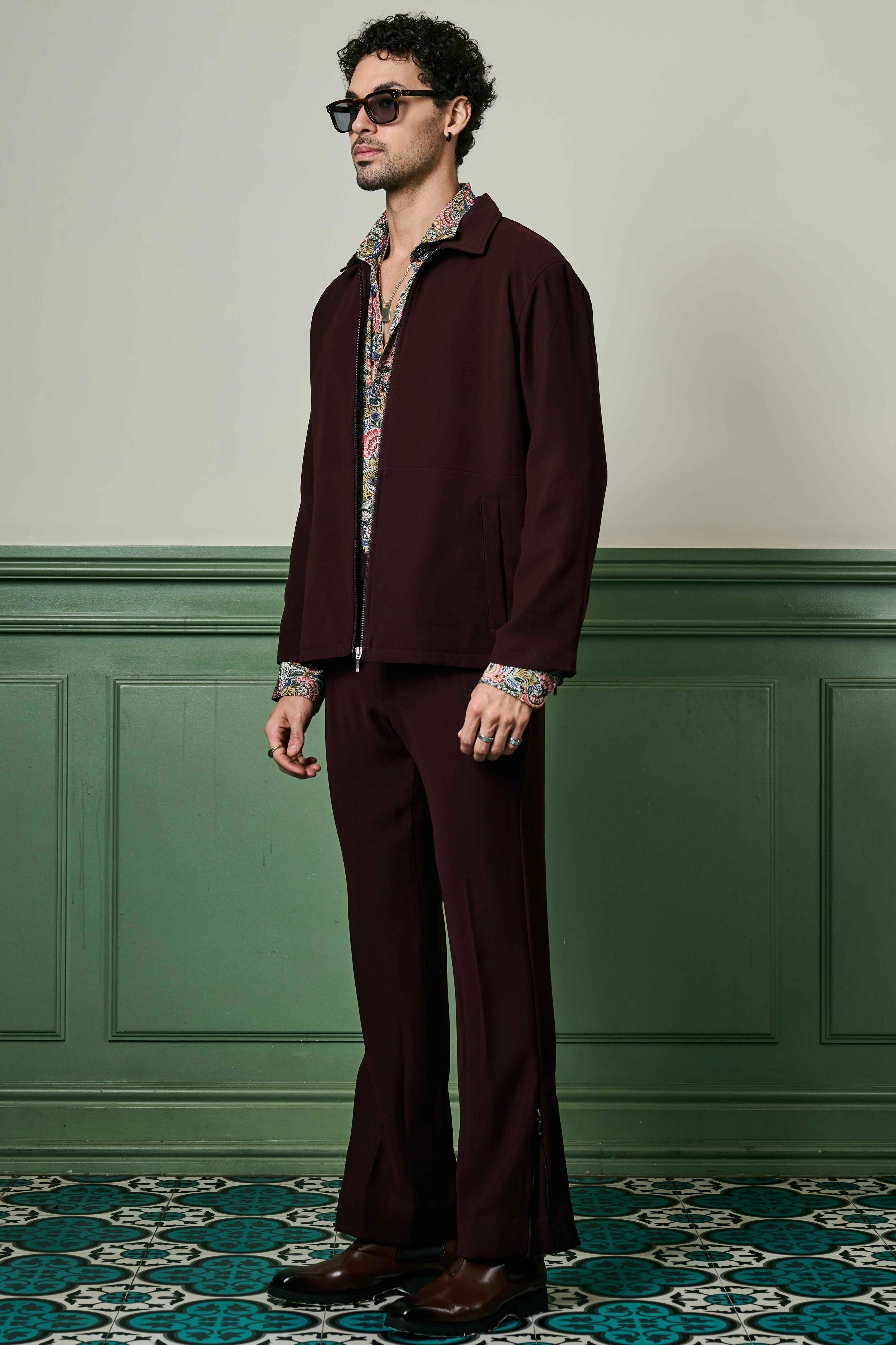 Step Into Elegance With Our Wine Lachka Knitted Co-Ord Set. This Stylish Ensemble Includes A Coordinating Zip-Up Jacket And Tailored Trousers, Both Crafted From Premium Knitted Lachka Fabric. The Deep Wine Color Exudes Sophistication, Making It Perfect For Both Formal And Casual Occasions. The Jacket Features A Front Zipper Closure, Adding A Contemporary Touch To The Classic Design, And The Trousers Are Designed With A Straight Fit For A Sleek And Modern Look.